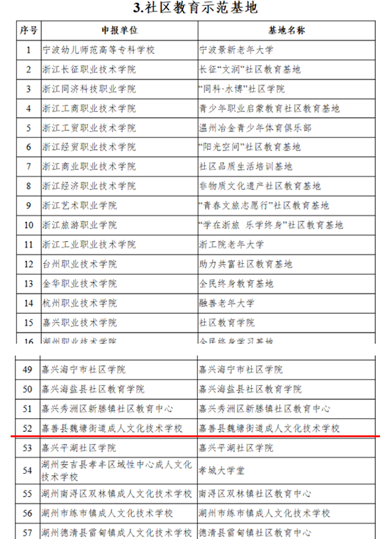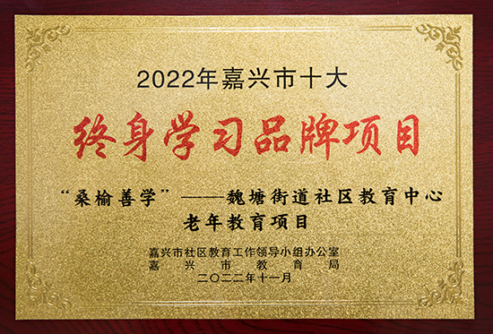 2022年,魏塘成校在教育局和魏塘街道領導的關心支持下,錨定目標,踔厲奮進,一鼓作氣,成功創建成浙江省現代化學校、浙江省首批優質老年大學分校,浙江省社區教育示范基地,嘉興市十大“終身學習品牌項目”。榮譽的取得,既是上級部門對學校近幾年工作的充分肯定和鼓勵,也是學校近幾年工作的集中體現和標志性成果,凝聚著全體教職工的智慧和汗水。