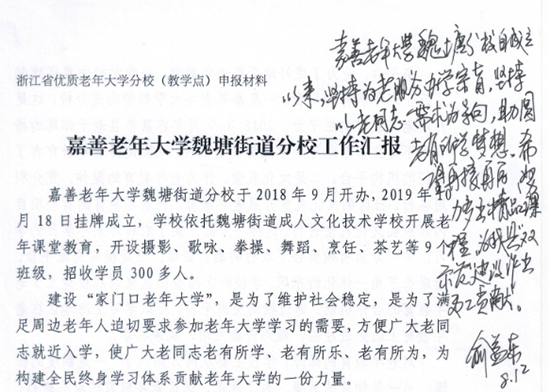2.老年教育取得了階段性的成果。自2018年學校系統開展老年教育以來,五年時間,嘉善成校的老年教育規模不斷擴大,2022年,學校有老年教育長班12個,學員360多人;教育內容不斷豐富,包括修生養息和生活技能兩大方面;管理日趨科學,走出了一條適合街鎮成校辦老年教育的路子。2022年,學校獲得了浙江省首批老年大學優質分校的殊榮(全省30家,嘉善唯一),縣委常委組織部部長俞益東對嘉善成校的老年教育工作作出重要批示,肯定了學校老年工作取得的成果。