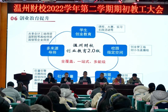 瑞兔呈祥,萬象更新。新學期,新起點,新征程,為確保學校各項工作有序開展,2月4日上午,溫州財稅會計學校在教學樓501報告廳召開了2022學年第二學期全體教職工大會,學校班子成員及全體教職工參加。
