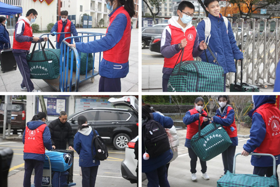 2月5日,財校學生有序返校。在學校政教處、團委的有序組織下,師生志愿者積極參與到返校的秩序維護、行李搬運等工作中。校園里閃動的紅色身影,為校園添了一抹亮色。