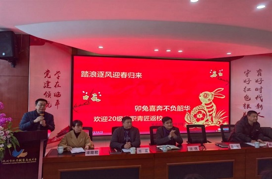 本次活動在莊嚴的國歌聲中正式啟動,實訓處主任滕方敏主持會議。分管副校長沈琪、安保處主任楊惠亮、實訓處副主任周晨、教務處副主任潘霞君、三位實習指導教師及全體實習生出席會議,共有205名實習生完成了新學期報到注冊工作。