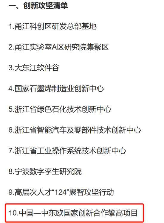 日前,全市“打造一流城市、躋身第一方陣”動員大會舉行,會上集中發(fā)布了包含30個項目的創(chuàng)新、改革、開放三張攻堅清單,寧波工程學院中國—中東歐國家創(chuàng)新合作研究中心為主申報的“中國—中東歐國家創(chuàng)新合作攀高項目”入選寧波市創(chuàng)新攻堅清單。