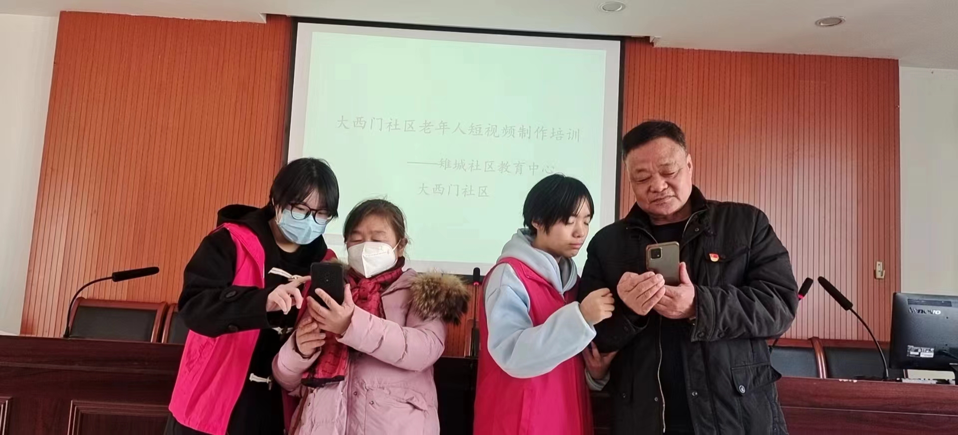 來自浙江警察學院的志愿者小王同學與大家分享了《留住美好回憶——抖音短視頻制作》的講座。小王同學從智能手機的功能說起,微信、娛樂、購物等娓娓道來,并重點講解了抖音短視頻的制作過程,他一邊說一邊示范。老人們雖然頭發花白,甚至有不少都戴著老花鏡,但大家都非常認真地學,一個個舉著智能機,邊聽邊操作,有不少老人還拿出小本子做著記錄。隨著時間的流逝,大家幾乎掌握了制作要領,并活學活用,現場拍視頻,進行制作,并上傳朋友圈,現場一片歡騰,到處是成功的歡呼聲與相互祝賀的掌聲。