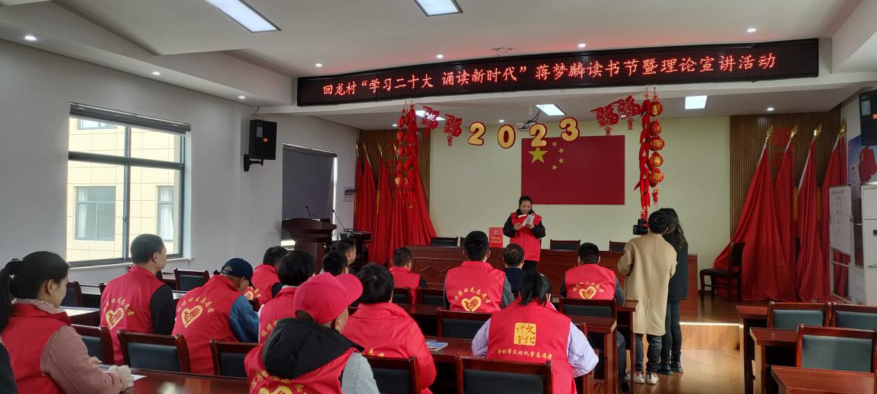 2月22日,寧波余姚黃家埠成校老師與回龍村共同開展蔣夢麟讀書節暨“學習二十大 誦讀新時代”理論宣講活動,20余名黨員代表、志愿者代表、村民代表齊聚一堂,以書為伴,分享快樂。
