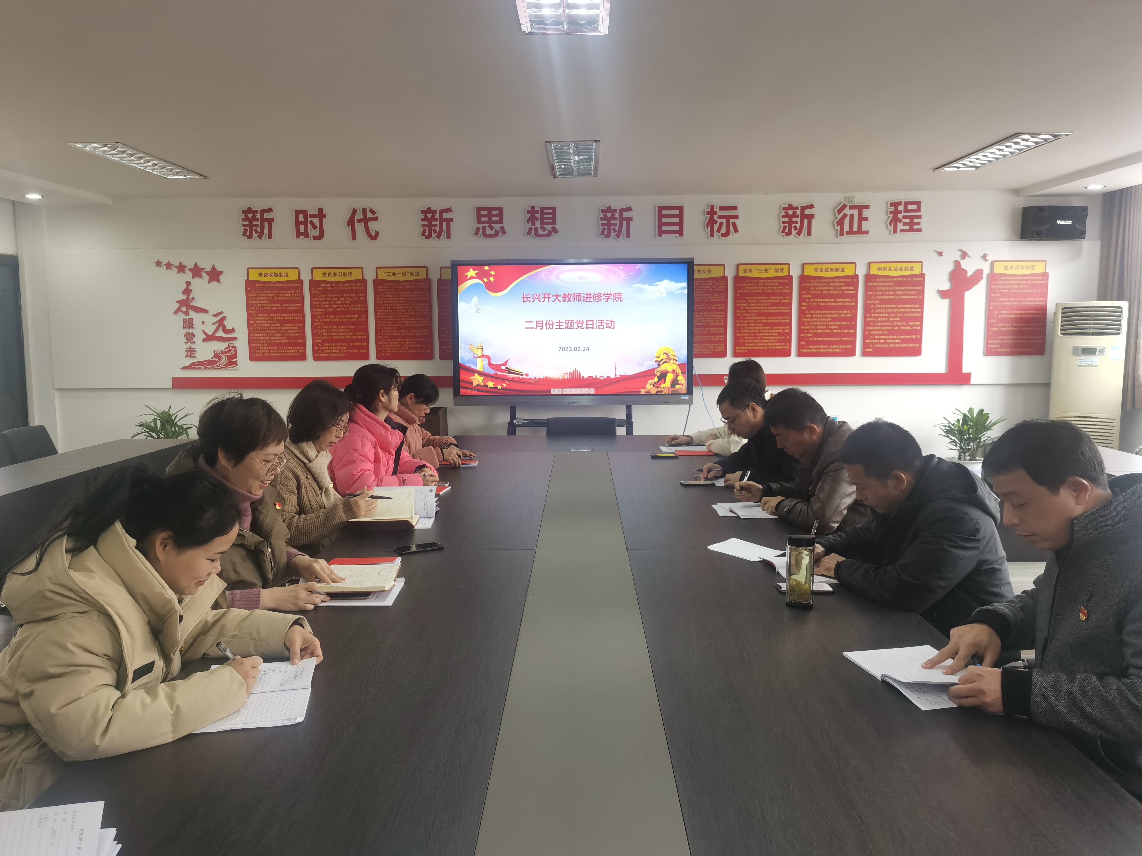 2月24日上午,長興開大教師進修學院黨員,在黨員活動室開展“提升自我 再創佳績”主題大討論活動。