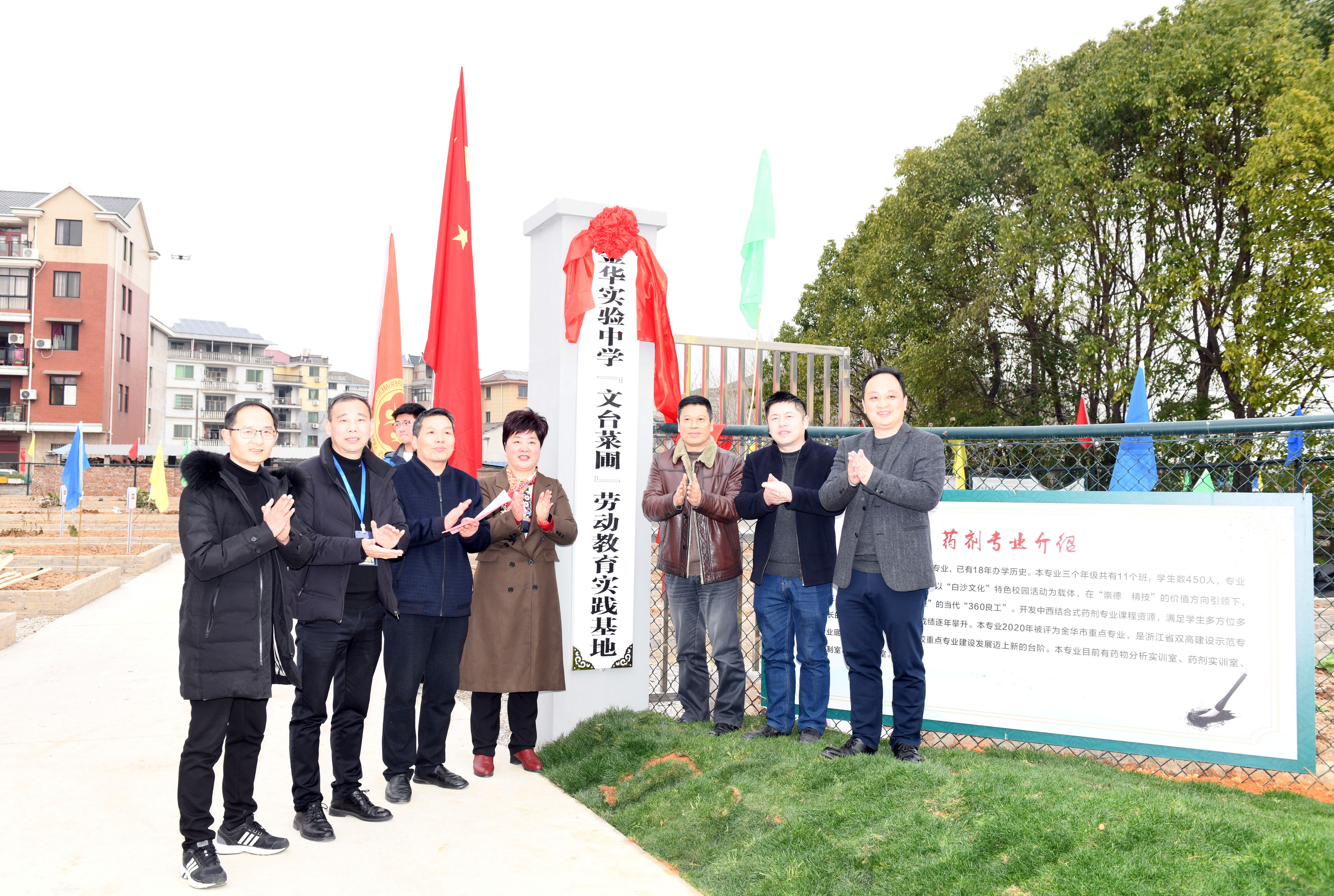 隨后,李剛宣布金華實驗中學“本草藥園”藥劑專業(yè)實訓基地揭牌儀式暨“文臺菜圃”勞動教育實踐基地開園。