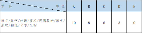 注:高中學考成績等級以浙江省教育考試院提供為準(學籍從外省轉入浙江的考生,我校僅認可經浙江省教育考試院認定的學考成績)。