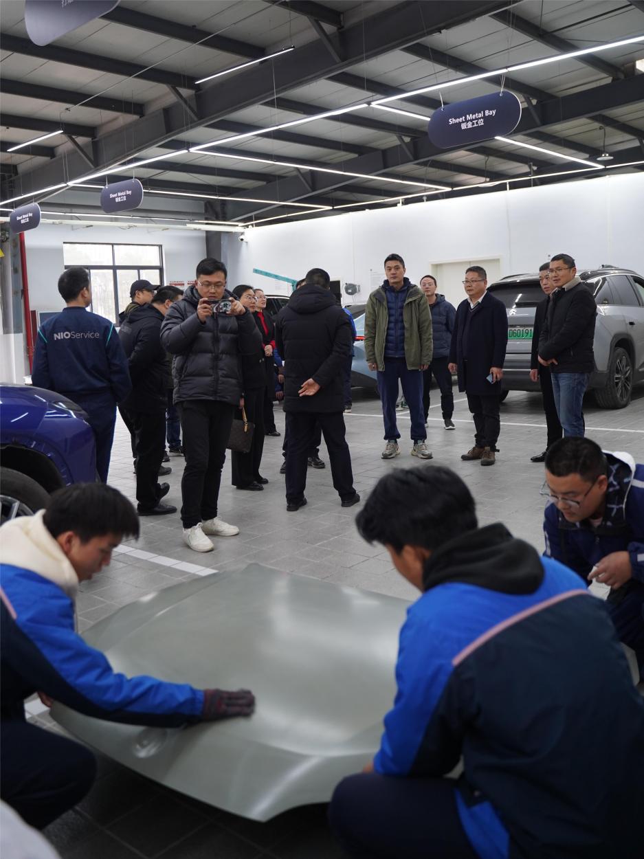 諸暨職教中心副校長劉柏炎帶領大家重點參觀了新能源汽車后市場技術服務與創新中心。該中心以國產高端品牌“蔚來”為主導,結合現代學徒制方式。技創中心的投入使用,讓理論+虛擬仿真+實車的“理虛實一體化”教學模式實現落地,學生的理論運用和實踐技能得到明顯提升。