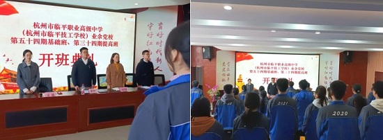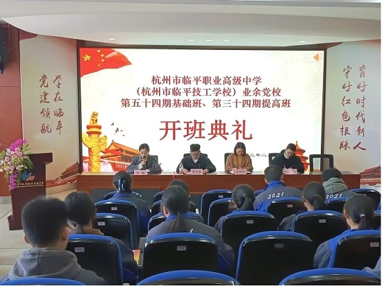 2月28日,杭州市臨平職業高級中學舉行2022學年第二學期業余黨校第54期基礎班、第34期提高班開班典禮。臨平職高副校長吳燕麗、校團委副書記邵澤城、校團委群團委員謝揚、各專業部23位黨基班和43位黨提班學員參加開班典禮。校團委組織委員沈璐老師主持開班典禮。