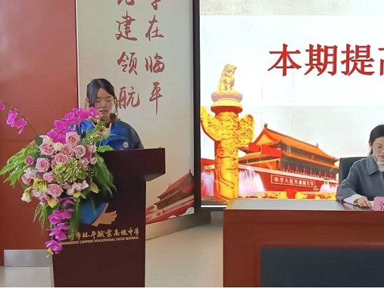上期黨基班優秀學員、本期黨提班學員2101班章涵純同學代表發言。從一名入團積極分子到如今加入黨提班,她一直在進步。希望所有黨校學員都能如她一般,永葆初心,在學習上做到真學,真懂,真用,學出效果、學到本領。
