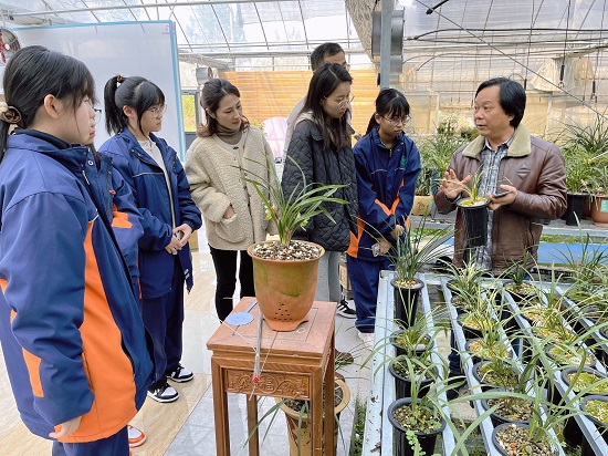 3月2日,湖州市現代農業技術學校新悠蘭花社師生代表走進校企合作單位湖州博雅蘭苑(湖州添雨蘭苑園藝有限公司)開展社團活動,在蘭香中品味蘭文化。