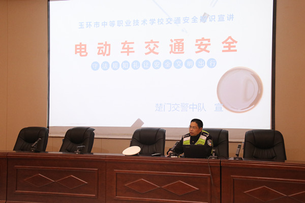 為進一步加強學生交通安全意識,規范學生電動車騎行安全管理,提高學生自身安全防范和自我保護能力,3月1日下午,楚門交警中隊梁警官走進玉環市中等職業技術學校,為學校學生開展電動車交通安全知識講座。