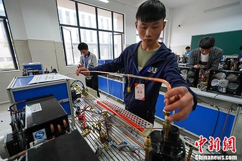 資料圖:貴州電子科技職業技術學院,一名學生在參加制冷與空調設備與調試維護組別比賽。 中新社記者 賀俊怡 攝