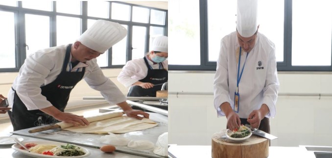 按照比賽規則,選手們要在規定時間內烹制一碗雪菜肉絲筍面,“大師傅”們紛紛拼出全力,秀出絕技。