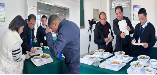 經過三小時的激烈角逐,42碗面條出鍋了,評委專家組對逐一品嘗,分別對面條制作、澆頭切配、打面燒制進行打分。“主要通過三大方面來進行打分,當然味道、面條的勁性等細節也是其中的評判標準。”作為本次比賽評委的諸暨技師學院餐旅服務系主任徐杭峰介紹。