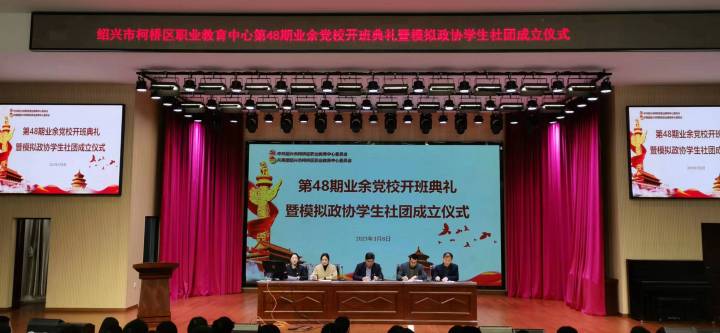 為進(jìn)一步充實(shí)團(tuán)員青年的理論素養(yǎng),不斷提升柯橋區(qū)職業(yè)教育中心團(tuán)員青年的實(shí)踐能力和綜合素質(zhì),更好地開展團(tuán)員青年思想政治引領(lǐng)、深化青年制度自信教育,充分發(fā)揮學(xué)生社團(tuán)育人功能,促進(jìn)模擬政協(xié)學(xué)生社團(tuán)規(guī)范化建立和發(fā)展,日前,紹興市柯橋區(qū)職業(yè)教育中心(高級技工學(xué)校)在報(bào)告廳隆重舉行紹興市柯橋區(qū)職業(yè)教育中心(高級技工學(xué)校)第48期業(yè)余黨校開班典禮暨模擬政協(xié)學(xué)生社團(tuán)成立儀式。校黨委書記趙宏偉、副校長繆偉亮、校團(tuán)委書記蔣瑩潔、專職團(tuán)干張利娟、各學(xué)院團(tuán)總支書記以及模擬政協(xié)學(xué)生社團(tuán)指導(dǎo)老師金海華出席儀式。