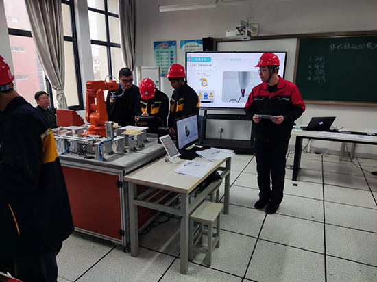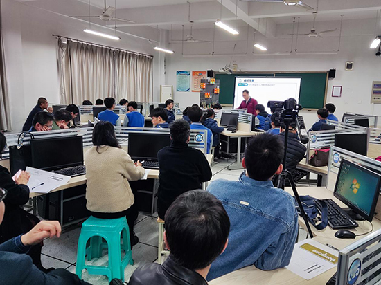 下午,4組教師進行了課堂展示,并全程直播。分別是由杭州市蕭山區第一中等職業學校何迪強執教的《梯形軌跡的模擬涂膠》公開課;余姚技師學院(籌)盧波《紅綠燈智能化改造》公開課;紹興市柯橋區職業教育中心任洪鋒《正弦“三劍客”之最大值與周期》公開課;寧波市北侖職業高級中學王東輝《水位自動控制器》公開課。