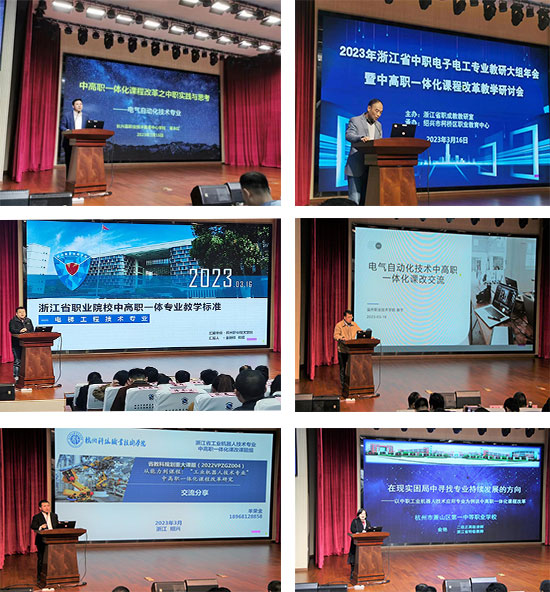 “中高職一體化課改論壇”由浙江省特級教師、正高級講師沈柏民主持。溫州職業技術學院智能制造學院副院長謝宇,長興縣職業技術教育中心學校副校長霍永紅,杭州科技職業技術學院智能制造學院副院長羊榮金,杭州市蕭山區第一中等職業學校正高級講師俞艷,杭州職業技術學院教授金新峰,共同分享了浙江省中高職一體化課程改革電氣自動化技術、工業機器人技術、電梯工程技術專業課程改革進展與體會。