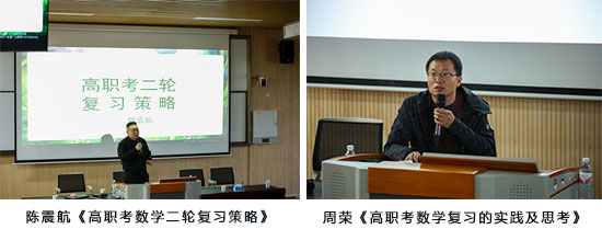 金華市第一中等職業學校周榮教師與東陽市職教中心東技校區陳震航教師分別闡述了自己對高職考數學復習中的方法策略與心得體會。兩位老師均指出要提高數學成績需注重思想方法,培養數學思維,從而提升解題技巧,讓每個學生都能從容自信應對高職考。