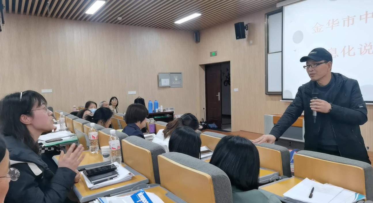 課后,金華市教研大組長楊靈芝老師對兩堂課從教材處理、信息化交互式使用、課堂組織形式等多維度進行了評價,高度肯定了授課教師的用心設計。隨后,與會教師們分組研討,在熱烈而廣泛的討論后推選一位代表上臺發言,各抒己見,以開放式態度分享兩堂公開課帶來的所思所得。