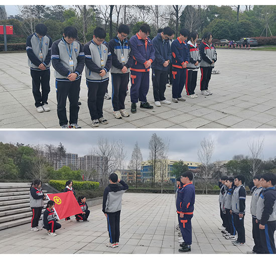活動中,同學(xué)們在金華革命烈士紀(jì)念園紀(jì)念碑前默哀三分鐘,并向紀(jì)念碑行鞠躬禮。表達(dá)對烈士的崇高敬意和深切悼念之情。在這無聲的對話中,同學(xué)們升起對革命先烈的哀思及欽佩之情。緬懷儀式后,在團(tuán)學(xué)干部帶領(lǐng)下,入團(tuán)積極分子進(jìn)行了莊嚴(yán)的宣誓。