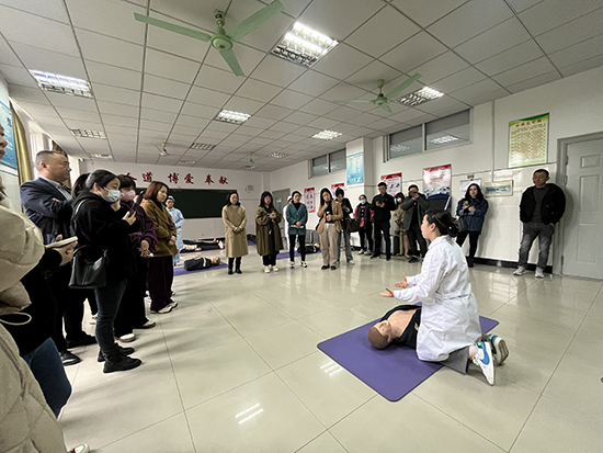 會議結束后,家長們在專業教師的帶領下,實地參觀了護理實訓室、中藥館,并在護理專業學生的指導下學習心肺復蘇,以切身的體驗感受自己孩子的學習氛圍。通過參觀學習、實操體驗,家長們更加認同了“職業教育大有作為,職教學生同樣有出彩人生”的美好愿景,也更加堅定了支持孩子職業夢想的信心。