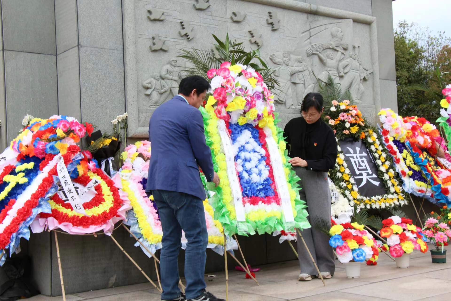 云和職技校黨總支副書記林偉琴,工會(huì)主席藍(lán)根兒,毛呈章老師,劉可晗老師一同為革命英烈敬獻(xiàn)花圈。