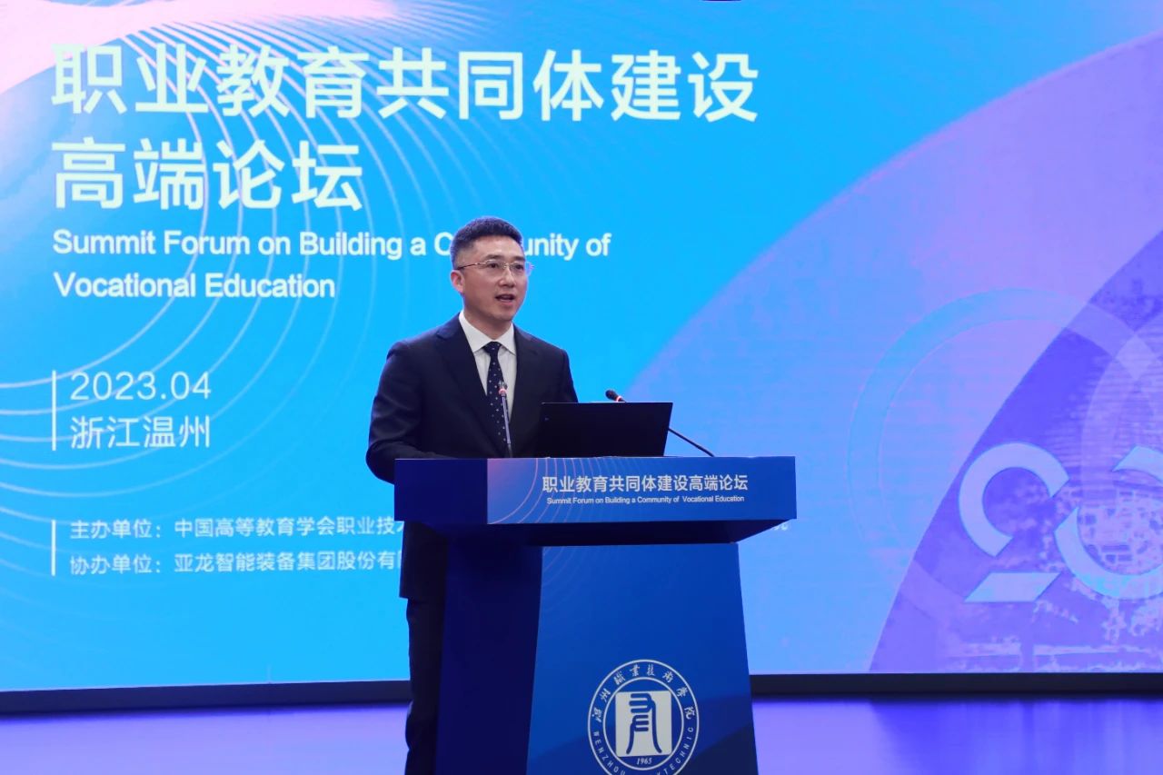 4月6日,職業教育共同體建設高端論壇正式拉開帷幕。本次論壇由中國高等教育學會職業技術教育分會、溫州市教育局、溫州職業技術學院主辦,亞龍智能裝備集團股份有限公司協辦。政校行企各界人士齊聚一堂,共商職教發展、共話職教未來,共同探討職業教育共同體建設之路。