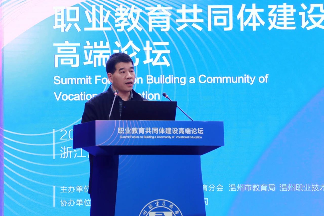 王靖高在《以職教共同體建設助推高質量發展——溫職院職教共同體建設的探索與實踐》主題報告中指出,溫州職業技術學院秉承溫州人精神,直面職教改革難題痛點,以下沉分布式辦學的實踐布局校區建設,以破壁融合發展豐富學校高質量內涵,打造了市域產教聯合共同體、行業產教融合共同體、中高職銜接共同體、數字職教共同體、科教融匯共同體“五大共同體”,形成了職教共同體新樣態。他從職教共同體“為何要建”“如何建設”“建得如何”三個方面深入闡述溫職院以職教共同體建設助推高質量發展的探索與實踐,希望與大家共同開展職教共同體的研究和建設,努力推動現代職教體系的戰略任務落地生根,共同為現代職教體系建設貢獻力量。