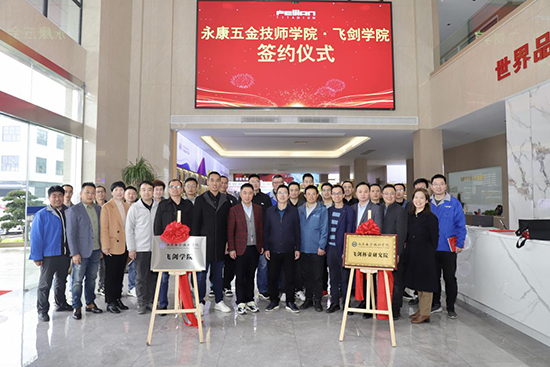 近些年隨著市場份額的不斷擴大,對各類技術人員的需求不斷增加。通過與永康五金技師學院的深度合作,以期共同打造飛劍杯壺研究院、聯合實驗室、科教融合人才培養基地等多個戰略項目。夏飛劍表示,飛劍工貿有信心打造成中國智能制造的典范!