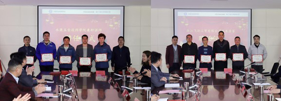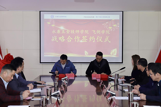 永康五金技師學院當場聘任飛劍工貿的5位技術專家擔任“技師學院兼職講師”。飛劍工貿則聘請了五金技師學院的5位博士或專業骨干教師擔任“飛劍工貿技術專家”。