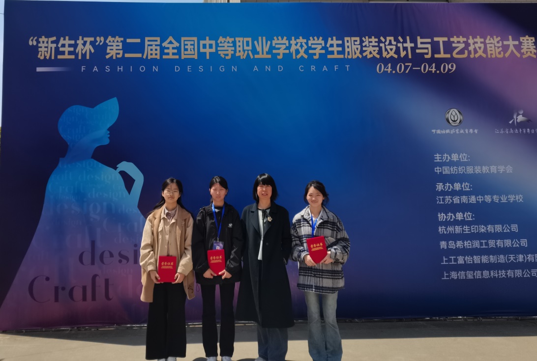 在4月8日—9日在江蘇南通舉行的“新生杯”第二屆全國中等職業學校學生服裝設計與工藝技能大賽中,嵊州市職業教育中心服裝設計與工藝專業的學生獲得佳績。陳翠萍同學獲得服裝CAD制版、工藝制作項目一等獎;王金敏同學獲得服裝CAD制版、工藝制作項目二等獎;韓麗同學獲得服裝電腦款式設計、立體造型二等獎。