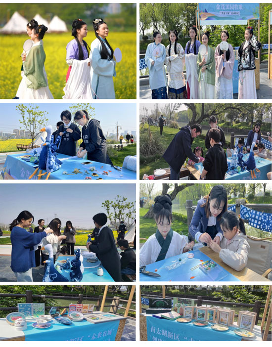 活動(dòng)現(xiàn)場(chǎng),學(xué)校校長(zhǎng)方毅瑛為金茂田園牧歌項(xiàng)目實(shí)踐基地授牌。值得一提的是,浙江省湖州藝術(shù)與設(shè)計(jì)學(xué)校師生在現(xiàn)場(chǎng)開展了非遺技藝展示體驗(yàn)活動(dòng)。活動(dòng)嘉賓在學(xué)生設(shè)計(jì)的農(nóng)創(chuàng)作品展臺(tái)前駐足觀看,對(duì)纏花、扎染等手工體驗(yàn)項(xiàng)目也是興趣十足,對(duì)學(xué)生的漢服秀展示更是贊不絕口,紛紛表示“漢服秀非常出彩”。本次展示均由該校學(xué)生自行完成,漢服及頭飾為服裝設(shè)計(jì)與工藝專業(yè)學(xué)生親手制作,化妝造型由美發(fā)與形象設(shè)計(jì)學(xué)生完成。