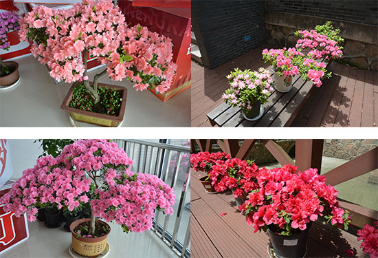 本次布展共有精品杜鵑盆景200多盆,這些盆景也是現代園藝技術專業的同學們學習扦插、嫁接繁殖、日常養護管理和造型實訓的重要材料。