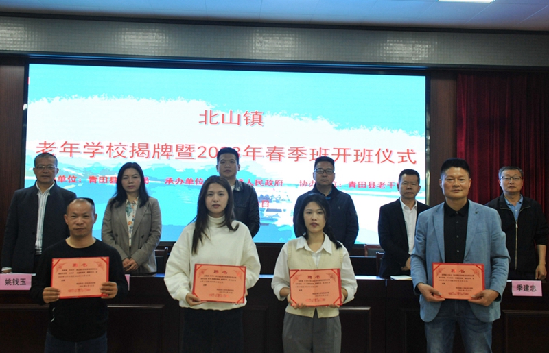 夏國軍代表縣教育局致賀詞。他指出,北山鎮(zhèn)老年學校的成立是是北山鎮(zhèn)全體老年人政治、精神、文化生活中的一件大喜事,也是青田縣落實省民生實事工程、推進老年教育事業(yè)發(fā)展的一項重要舉措。他希望青田縣成技校參照省優(yōu)質(zhì)老年學校標準,完善管理機制,規(guī)范辦學行為,采取多渠道、多類型、多層次的方式開展教學,切實滿足不同年齡、文化、經(jīng)歷和興趣愛好的老年朋友的需要,讓老年朋友坐得住、聽得懂、學得好、玩得樂,使老年學校成為廣大老年朋友愉悅身心、陶冶情操、豐富生活的健康樂園、精神家園!希望廣大老年朋友踴躍參加到老年學校的各類培訓、活動中來,用多彩的老年學校文化生活充實自己,充分享受“文化養(yǎng)老”帶來的樂趣!