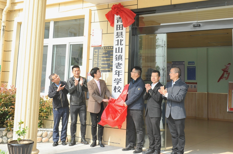 在熱烈的掌聲中,廖建利和陳慧共同為北山鎮(zhèn)老年學校揭牌。