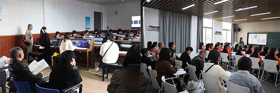 隨后,來訪教師分別觀摩了學校的一堂鋼琴課和音樂課,兩位任課老師在教學過程中都充分調動了學生的積極性,重視學生個體鮮活的課堂體驗,經由現代化的教學手段將科學的教育理念滲透到課堂的每一個細節,教學過程精彩紛呈,受到了來訪教師的一致好評。