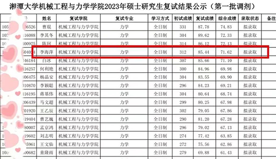 2023年的春天,我終于等來了考研的復試結果:我被自己心儀的學校——湘潭大學擬錄取了。越努力,越幸運,我即將開啟自己人生的又一段美好旅程。