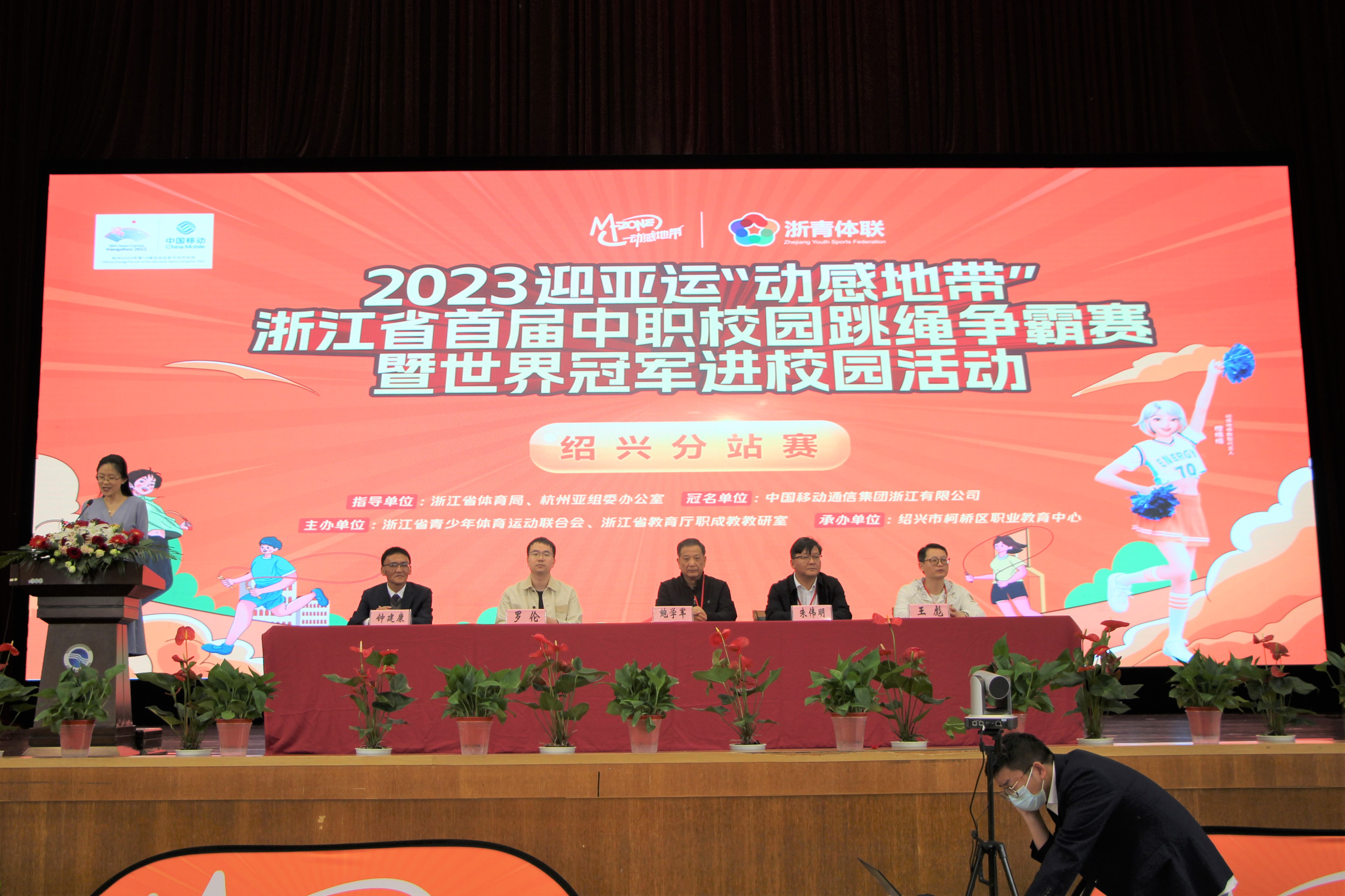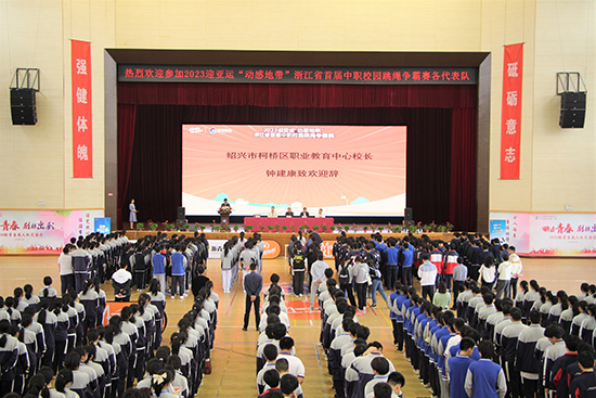 4月21日,由浙江省青少年體育運動聯(lián)合會、浙江省教育廳職成教教研室聯(lián)合主辦的2023迎亞運“動感地帶”浙江省首屆中職校園跳繩爭霸賽紹興分站賽在柯橋區(qū)職業(yè)教育中心體育館內(nèi)隆重開賽。此次活動旨在更好地宣傳杭州亞運會,貫徹實施體教融合,增強中職學生體質(zhì)健康,提高學生體育運動興趣,培養(yǎng)學生團結協(xié)作的精神。浙江省青少年體育運動聯(lián)合會會長鮑學軍,省青少年體育運動聯(lián)合會副會長羅倫,市教育局黨委委員、副總督學朱偉明,市教育局職業(yè)教育教學研究室副主任王彪,浙江省紹興市柯橋區(qū)職業(yè)教育中心校長鐘建康等領導以及柯橋區(qū)職業(yè)教育中心近500名學生一起參加活動。