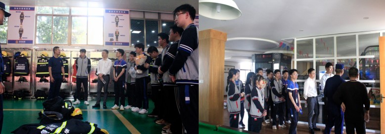 活動開始后,首先由消防員為大家講解消防基本知識,同學們了解到了消防車內部的基本結構,有水槍、水帶、急救箱等設備一應俱全,學習了各類消防車輛的名稱及用途,有搶險救援車、云梯車等。針對同學們提出的問題,消防員一一解答,現場學習氛圍濃厚。