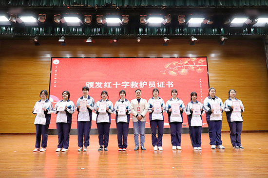 長興縣紅十字會副會長王敏和長興縣人力資源與社會保障局副局長陳靜分別為學(xué)生代表分別頒發(fā)《急救護(hù)理員》和《養(yǎng)老護(hù)理員》技能證書;長興縣衛(wèi)生健康局黨委委員胡偉華等領(lǐng)導(dǎo)為36名優(yōu)秀畢業(yè)生頒發(fā)榮譽(yù)證書。