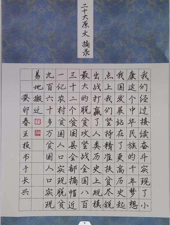 ?硬筆組一等獎:21秋會計本 王楨《打贏脫貧攻堅戰》