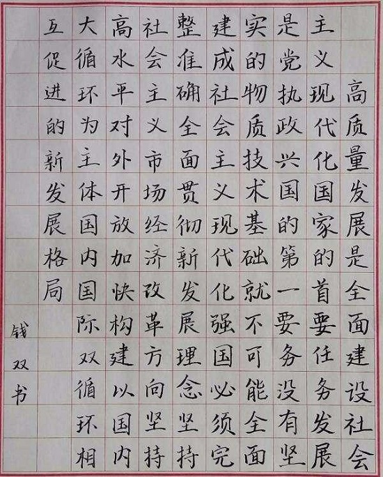?硬筆組一等獎:22春建筑專 錢雙 《高質量發展》