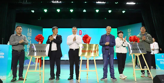隨后,盧忠健、周敏、王鐘寶、樓軍武、沈民遠、樓梅菊等主辦方、協辦方、承辦方代表共同為“技能鄉村產業學院”“產教融合實訓基地”“就業創業基地”揭牌。