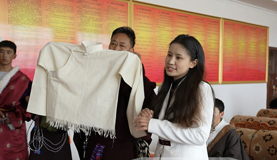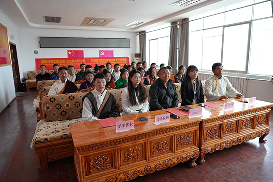 活動(dòng)第二項(xiàng),兩校教師代表交流發(fā)言。富陽職教中心團(tuán)委副書記倪夢(mèng)霞表示,此項(xiàng)活動(dòng)的順利開展,既加強(qiáng)了東西部的交往、交流、交融,也促進(jìn)了雙方相互了解、相互尊重、相互學(xué)習(xí)、相互幫助,把愛我中華的種子,埋在每個(gè)青少年的心靈深處,增強(qiáng)了他們對(duì)偉大祖國(guó)的認(rèn)同、對(duì)中華民族的認(rèn)同、對(duì)中華文化的認(rèn)同、對(duì)中國(guó)特色社會(huì)主義道路的認(rèn)同。讓香囊哈達(dá)結(jié)情結(jié)誼,愿團(tuán)結(jié)之花常開長(zhǎng)盛。那曲市職業(yè)技術(shù)學(xué)校團(tuán)委書記才桑拉姆介紹了純手工制作的藏式上衣和手工編織的“烏朵”——拋石繩。她表示,做好民族團(tuán)結(jié)工作,關(guān)系到每個(gè)師生、影響每個(gè)家庭、維系整個(gè)社會(huì),是關(guān)乎社會(huì)穩(wěn)定的大事、要事。兩校教師代表進(jìn)行了深入交流,互道美好祝福。