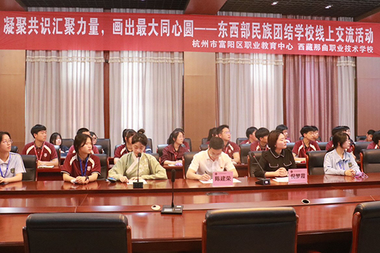 深入貫徹落實(shí)黨的二十大精神,堅(jiān)持鑄牢中華民族共同體意識(shí),促進(jìn)各民族青年交流交往交融,強(qiáng)化各民族青年對(duì)中華文化的認(rèn)同和傳承,構(gòu)筑中華民族共有精神家園,杭州市富陽區(qū)職業(yè)教育中心和那曲市職業(yè)技術(shù)學(xué)校聯(lián)合舉辦“凝聚共識(shí),匯聚力量,共話同心圓”云上活動(dòng),兩校師生100余人參加活動(dòng)。