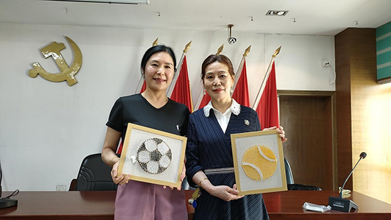 隨后,結(jié)合課上學(xué)習(xí)到的英語體育項目單詞,普福社區(qū)文教干部還開展了釘子畫手工活動。
