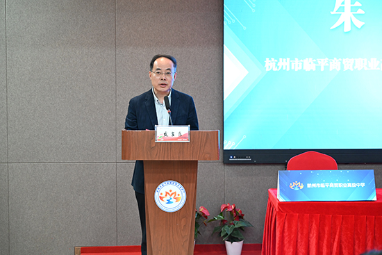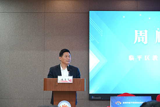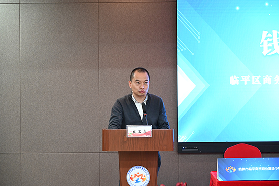 臨平區商務局黨委委員、副局長錢江代表區商務局,對此次簽約儀式的成功舉行表示祝賀,向與會專家介紹了臨平區的電商產業態勢、數字經濟轉型狀況及產業融合發展下的人才需求。他肯定了臨平商貿職高的辦學成果及人才培養模式,希望學校能借此次合作的東風,更好地將企業和學校融合,不斷創新人才培養方式,相信在三方共同努力下,臨平區本土型電子商務人才梯隊建設將邁出堅實步伐。