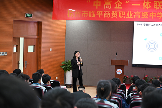 臨平區教育局調研員周順芳代表區教育局對三方的成功簽約表示熱烈祝賀,同時介紹了臨平區歷年來訂單式人才培養工作的開展情況,希望更多的企業、行業能夠參與進來,攜手培養臨平本土高技能人才。臨平職業教育將以此次“中高企”一體化簽約為契機,畫好中高企同心圓,建立中職—高校—企業一體化的深度跨界融合培養模式,尋求新思路、拓展新途徑,為浙江省職業教育發展貢獻智慧和力量。