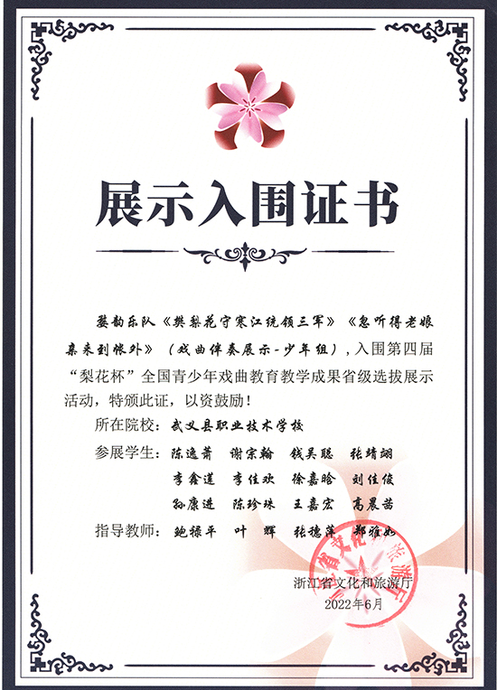 武義縣職業(yè)技術(shù)學(xué)校選送的婺劇器樂表演節(jié)目《三請(qǐng)梨花》通過省級(jí)初評(píng),以省級(jí)小組第一的成績?nèi)雵敬稳珖寡荨V档靡惶岬氖牵淞x職技校是亮相本次展演活動(dòng)的唯一一所縣級(jí)中職學(xué)校。